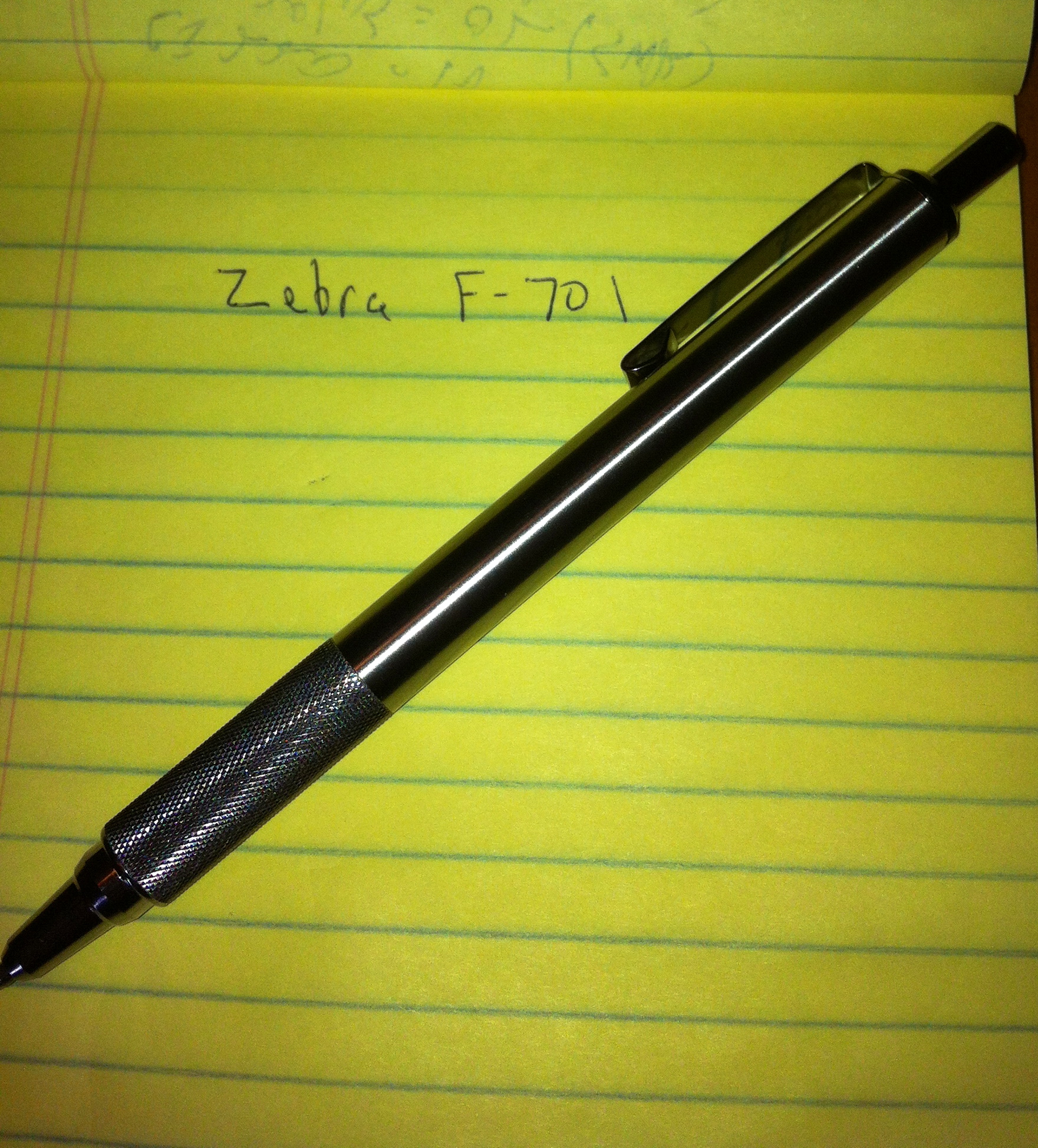 That was all my thrifty peepers needed to see. With a stainless steel barrel and the option to refill with inexpensive Zebra F-series refills, the F-701 seemed to be what I was looking for. Once I got it out of its package, I noticed the pen has an excellent feel to it. It has enough weight to feel substantial but not heavy, with the weight centered toward the tip. The pen feels balanced, not top heavy. The knurling on the grip reminds me of mini-Maglite tubes, with enough grip to provide purchase but not pain.